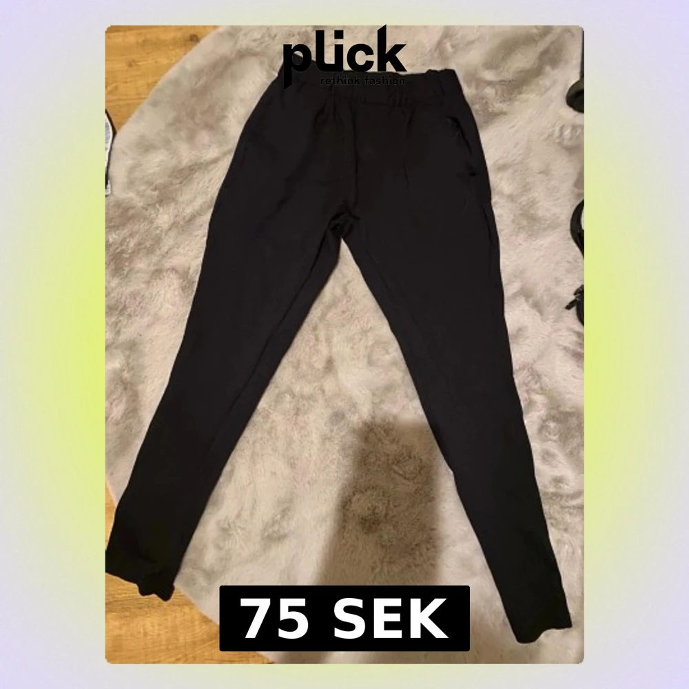 Säljer ett par svarta mjukisbyxor med resår i midjan. Byxorna har fickor på sidorna och är gjorda i mjukt material. Inga defekter.