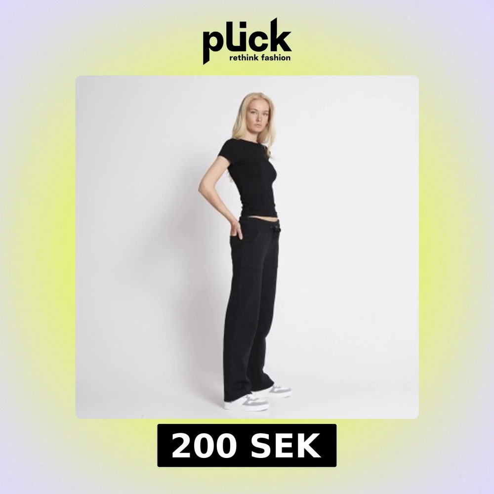Svarta mjukisbyxor med bred resår och snörning i midjan. Byxorna har raka ben, stora fickor framtill och är tillverkade i mjukt material som känns skönt mot huden. Perfekta för en chill och avslappnad stil.