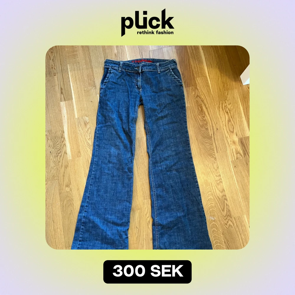 Utsvängda lågmidjade jeans från märket redstar. Storlek 30/34 (bild 4), skulle säga att de är xs/s. Skriv om ni har fler frågor 💗pris går att diskutera!!