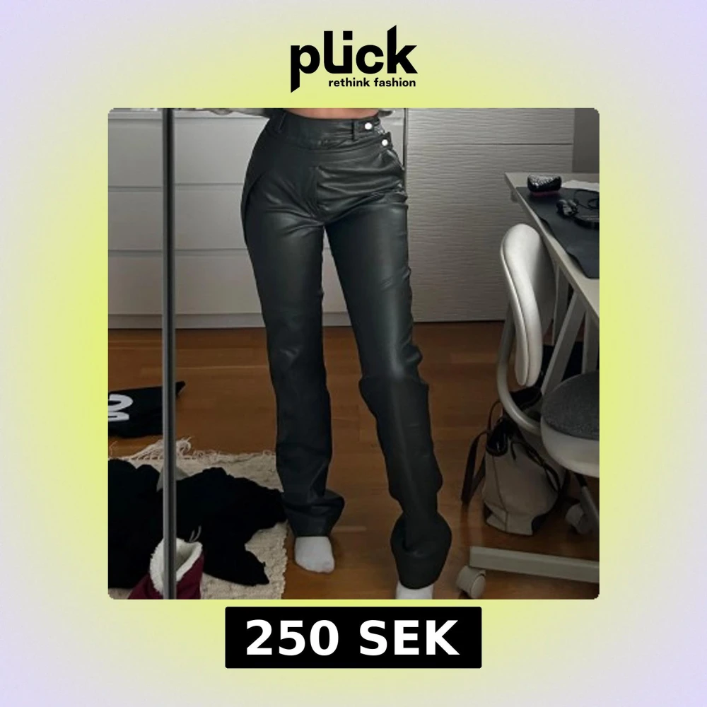 Säljer ett par skinnbyxor från A-design med raka ben och ger en otrolig stjärt🍑. Byxorna har klassiska fickor både fram och bak samt stängs med två silverfärgade knappar. Snygg passform och stilren look.