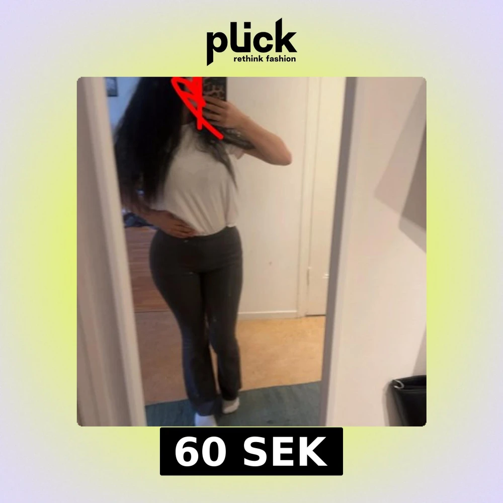 Säljer ett par mörkgrå leggings med bootcut-modell. Byxorna har en tight passform upptill och blir vidare nedtill. Nästan som kostym material!