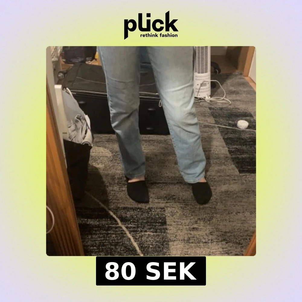 Säljer ett par ljusblå mom jeans i straight fit med klassisk femficksdesign. Jeansen har hög midja och raka ben, perfekt för en avslappnad och trendig look. Tillverkade i bomull för skön känsla och snygg passform.
