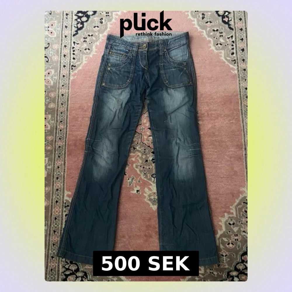 Snygga blå bootcut jeans med coola fickor. Säljer då de är för små i midjan för mig men är perfekt längd för mig som är 163 cm lång.💕midjemått: 37 cm, innerbenslängd: 80 cm.