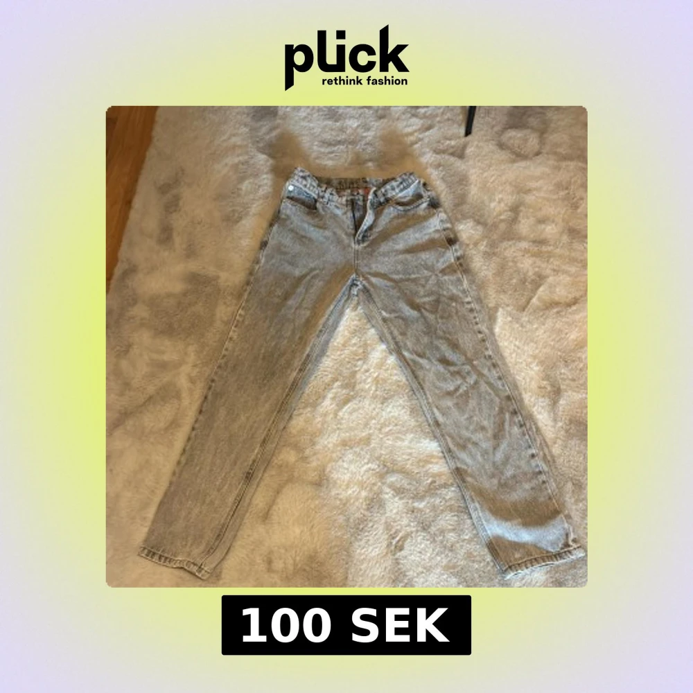 Säljer ett par grå jeansbyxor från RYVLS. De har en klassisk femficksdesign och en bekväm passform. Perfekta för en avslappnad stil. Stl 158-164