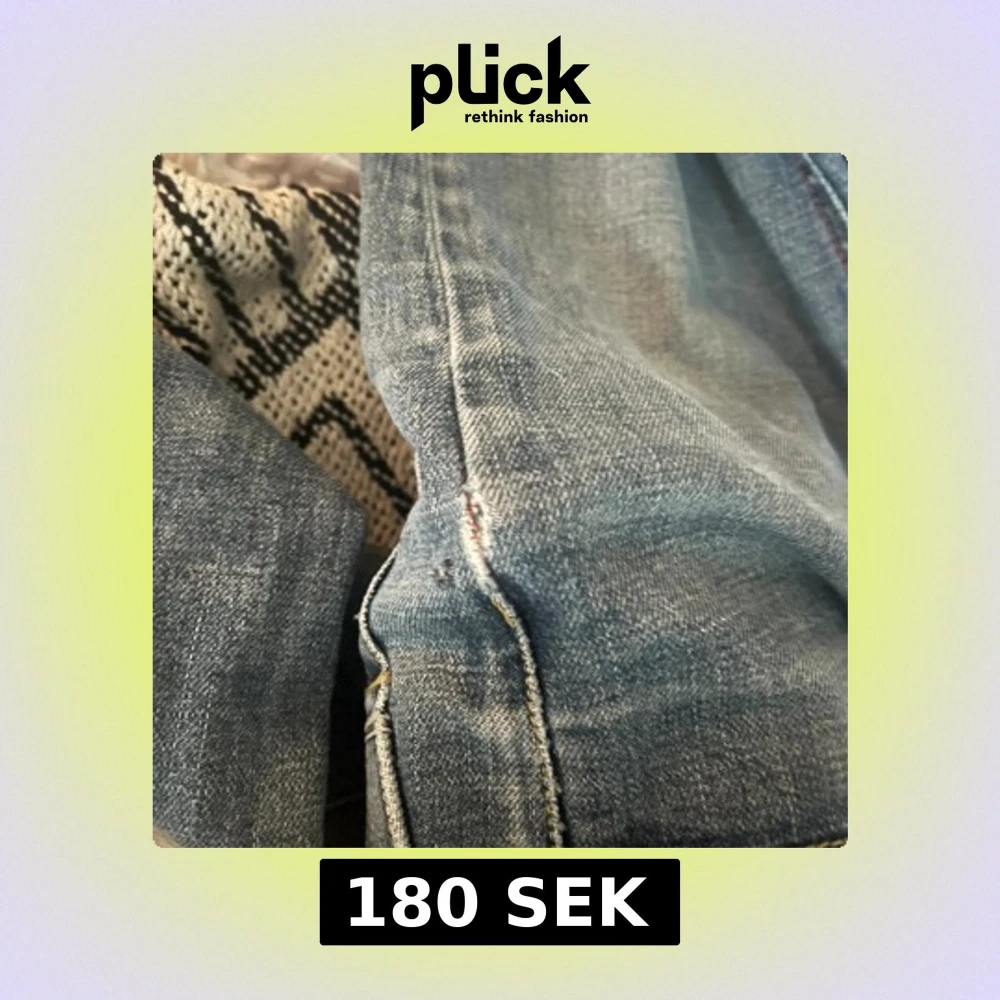 Säljer ett par blå jeans med klassisk rak passform och tydliga sömmar. Jeansen har en ljus tvätt och är tillverkade i robust denim. Perfekta för dig som gillar en tidlös stil och vill ha ett par jeans som funkar till det mesta.