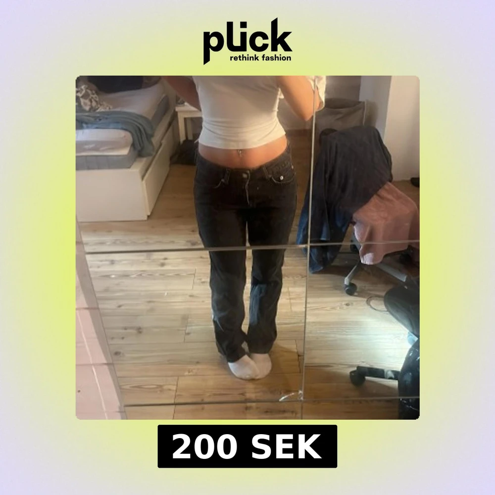 Svarta jeans från lager 157 med knappgylf. Modell icon som har låg midja och raka ben.
