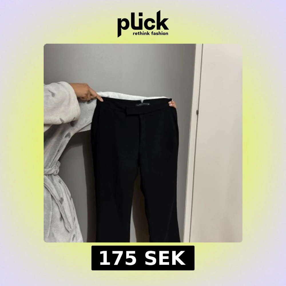 Stilrena svarta lågmidjade kostymbyxor från Zara Woman med klassisk rak passform och diskreta fickor bak. Byxorna har en låg midja och är perfekta för en clean och snygg look. Materialet är mjukt och följsamt, vilket gör dem riktigt bekväma.