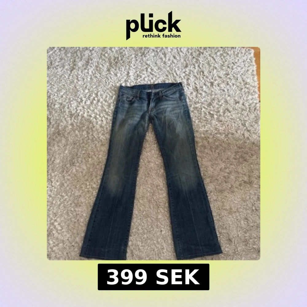 Lågmidjade bootcut jeans från 7 for all mankind. Har ingen jeansknapp men går att sy dit. Midjemått rätt över: 38 cm, innerbenslängd: 75 cm