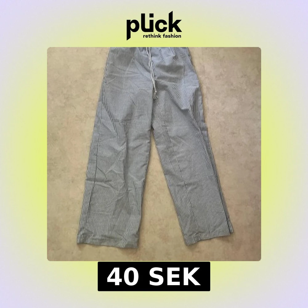Snygga randiga linnebyxor i vitt och blått med vida ben. Byxorna har snörning i midjan och är tillverkade i ett lätt och svalt linnematerial, perfekta för varma dagar. Klassisk look med tunna vertikala ränder.