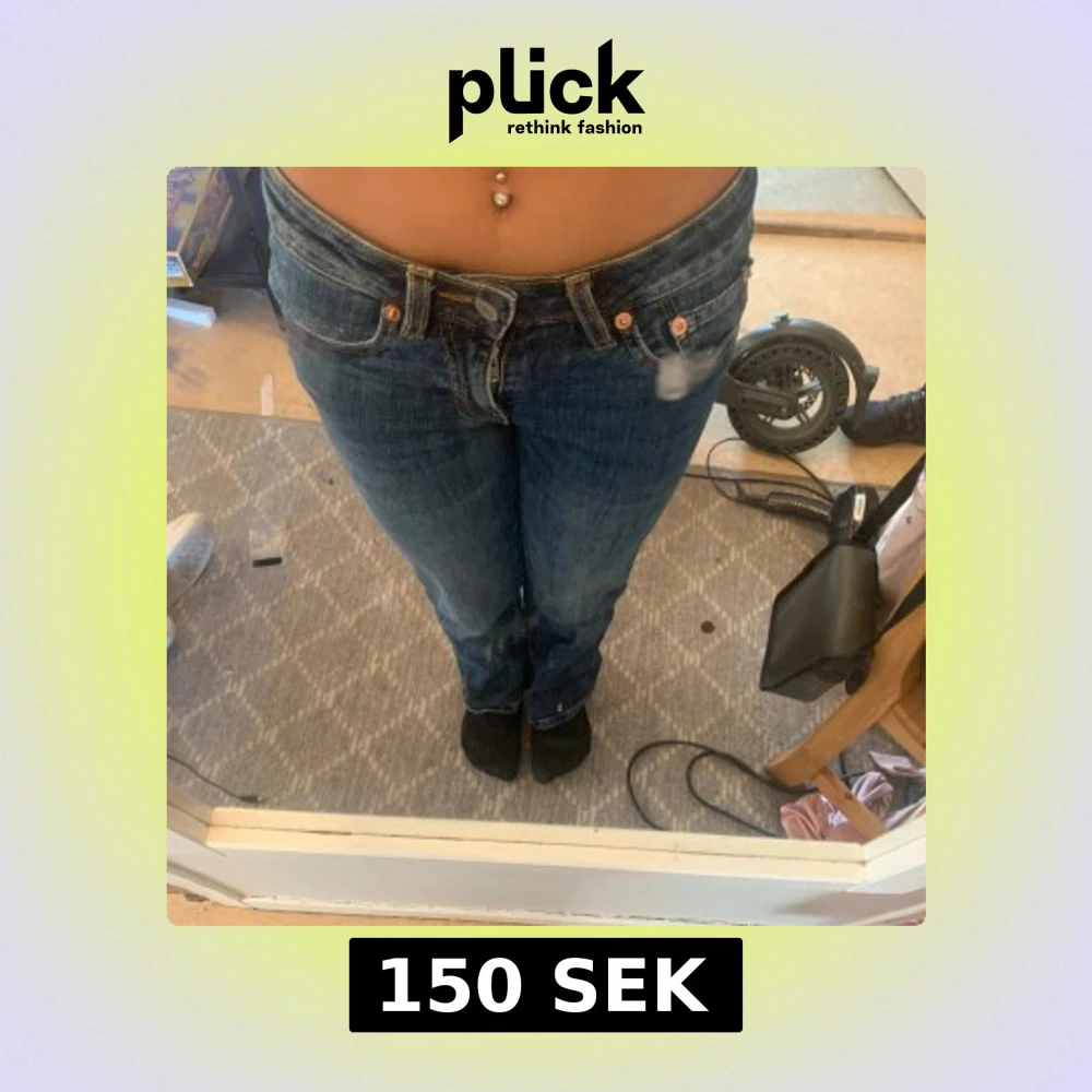 Säljer ett par klassiska blå jeans från 7 For All Mankind med raka ben och låg midja. Jeansen har snygga detaljer på bakfickorna och en mörk tvätt. Perfekta för dig som gillar en tidlös och avslappnad look.