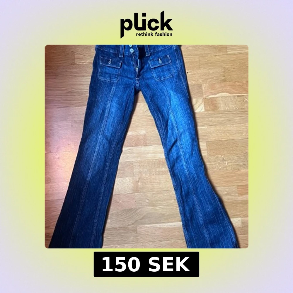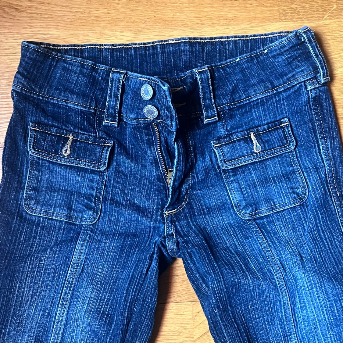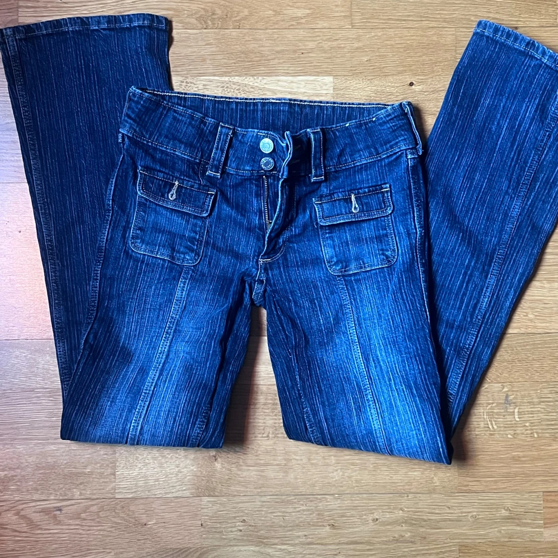 Lågmidjade blåa jeans från hm, handsydda för att bli lite extra lågmidjade! Knappt använda🫶