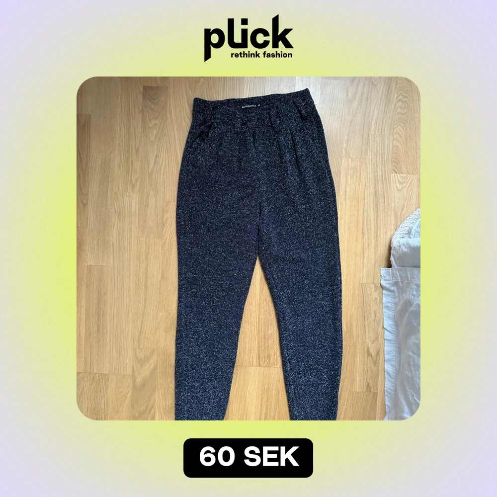 Snygga svarta byxor från Rut&Circle i storlek XS. Så sköna - känns som tights! Byxorna har en glittrig yta - perfekt till nyår! Slits längst ner vid anklarna. Passar mig som är 173 cm lång. Köparen står för frakt ✨