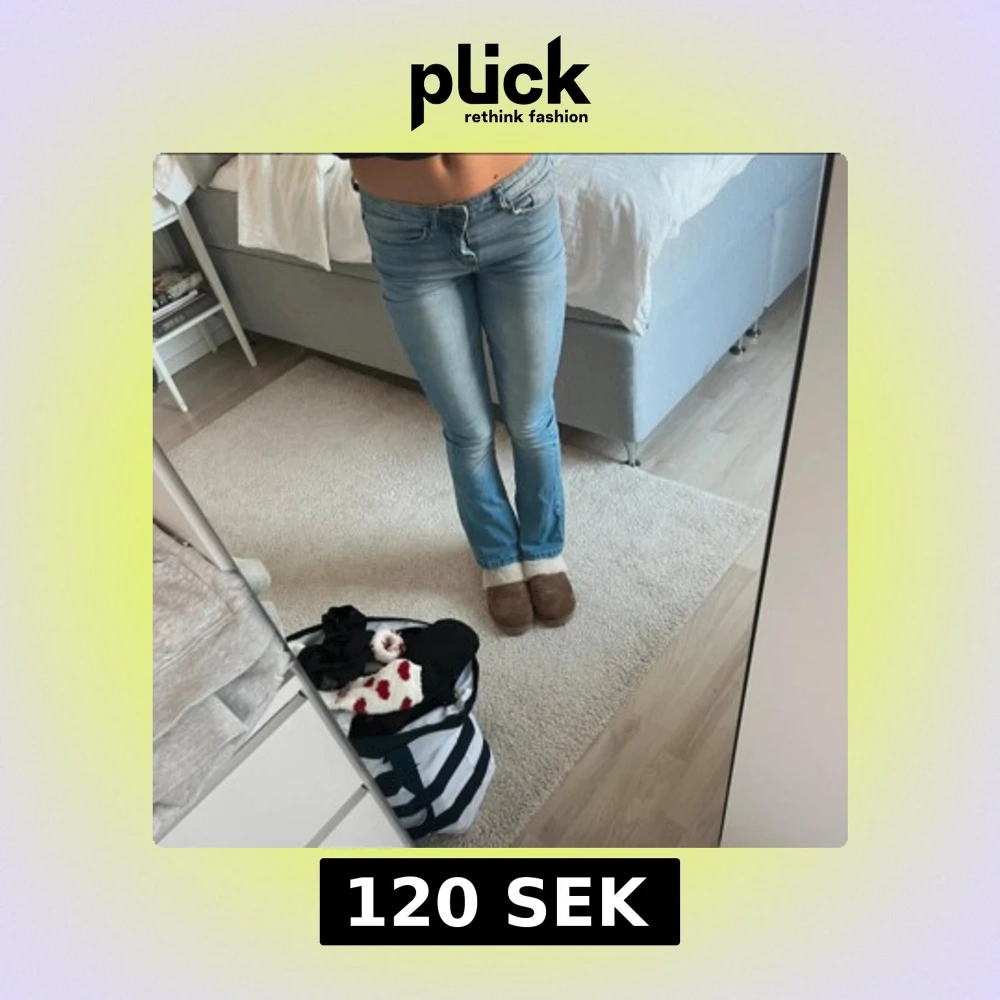 Säljer ett par ljusblå jeans från Noisy May som är mid waist och bootcut. Jeansen har klassisk femficksdesign, dragkedja och knapp framtill.