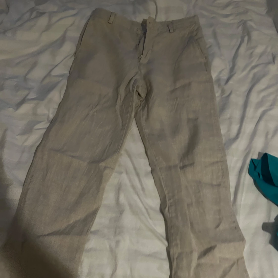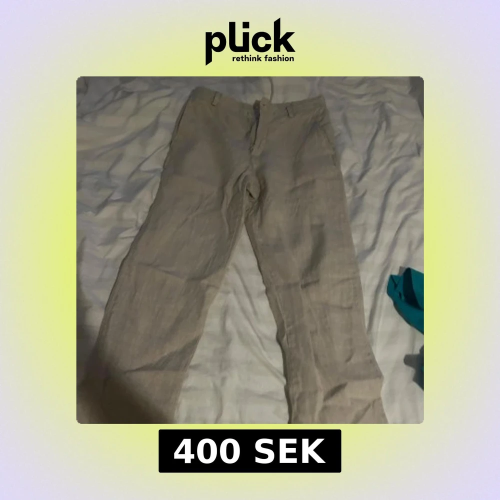Snygga beiga linnebyxor med klassisk rak passform och hällor för bälte. Byxorna har diskreta sidfickor och stängs med dragkedja och knapp. Perfekta för en chill och stilren look under varmare dagar.