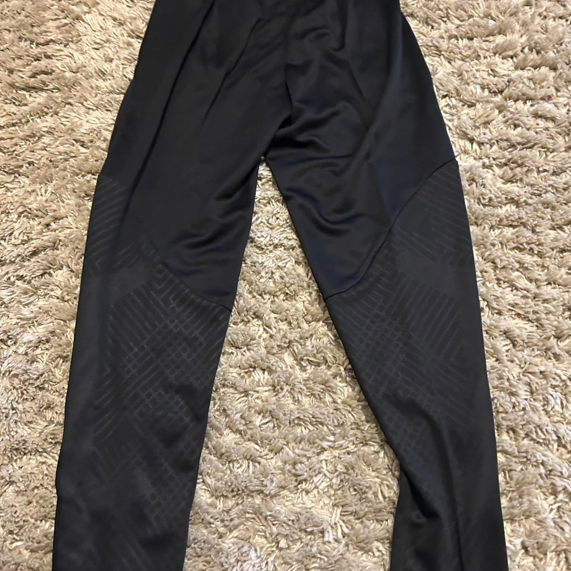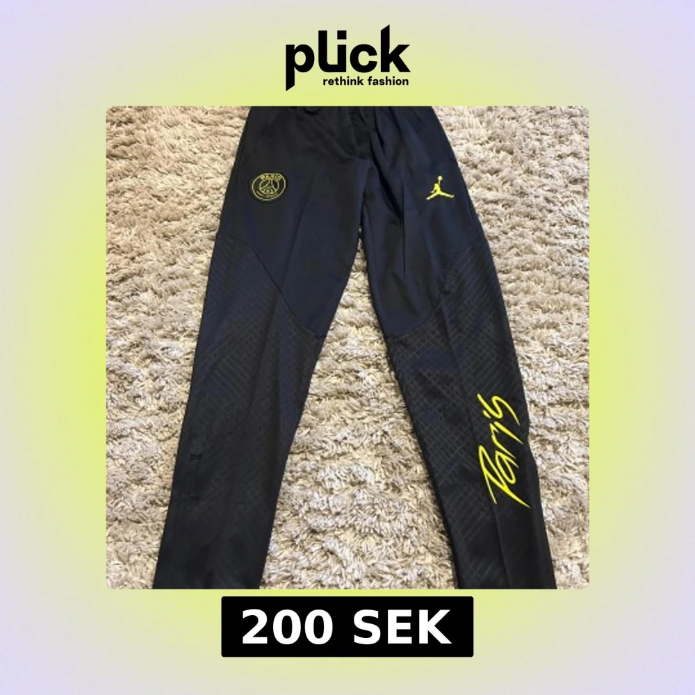 Snygga svarta träningsbyxor från PSG x Jordan med gula detaljer och loggor. Byxorna har smal passform, elastisk midja och coolt mönstrade partier på benen. Perfekta för fotboll eller chill. Paris-tryck i gult längs benet ger extra stil.