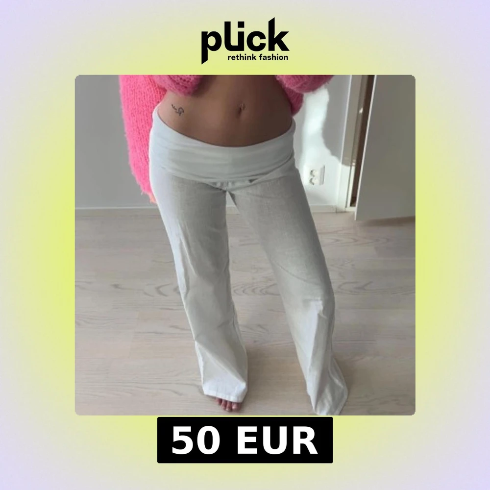Snygga vita linnebyxor med låg midja och raka ben. Byxorna har en avslappnad passform och är perfekta för en chill och trendig look. Lätta och luftiga i materialet, vilket gör dem sköna att bära under varmare dagar.
