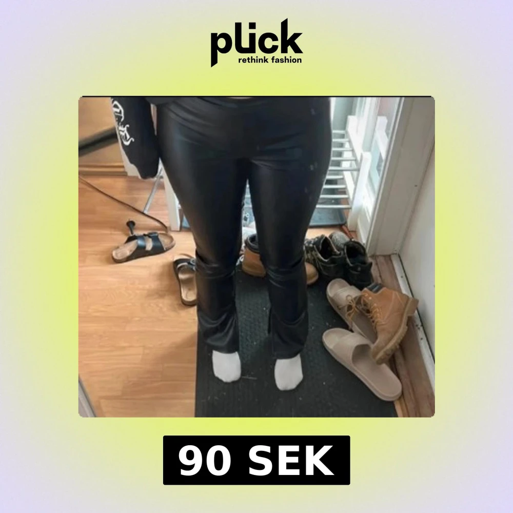 Säljer dessa svarta skinnbyxor med slits, som är aäldirg använda och priset kan diskuteras💞