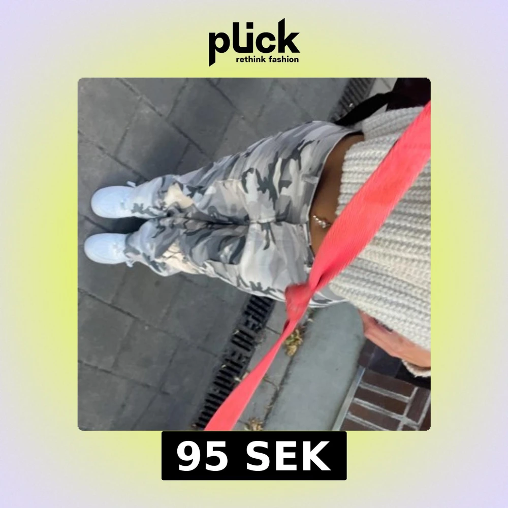 Snygga byxor med grått och vitt militär-mönster. Byxorna har en loose passform och är lågmidjade men kan justeras, använda endast en dag så dem är som nya .