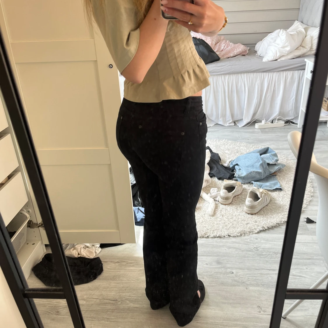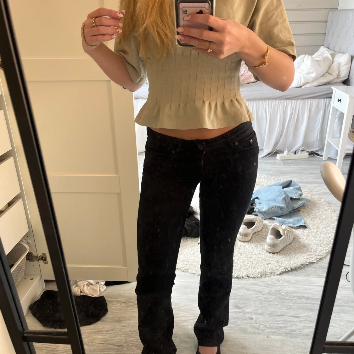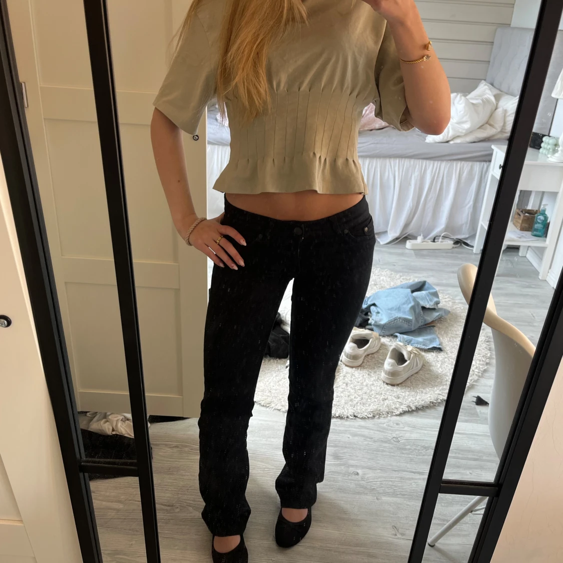 lågmidjade jeans som är ”raka” i benen, som nya i skicket.