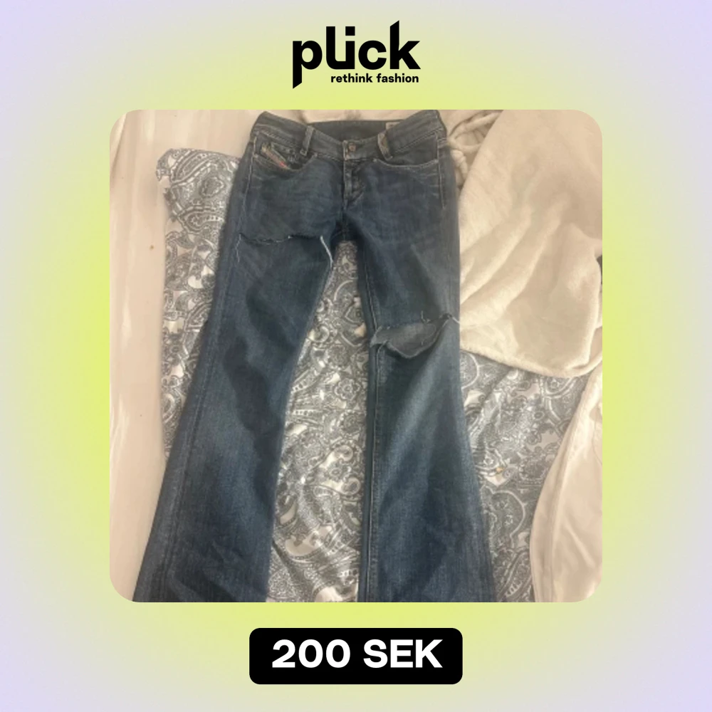 As kattiga lågmidgade bootcut jeans med väldigt bra kvalite,super trendiga och sköna,står ingen storlek men skulle säga att dom är som xs-s 💕💕