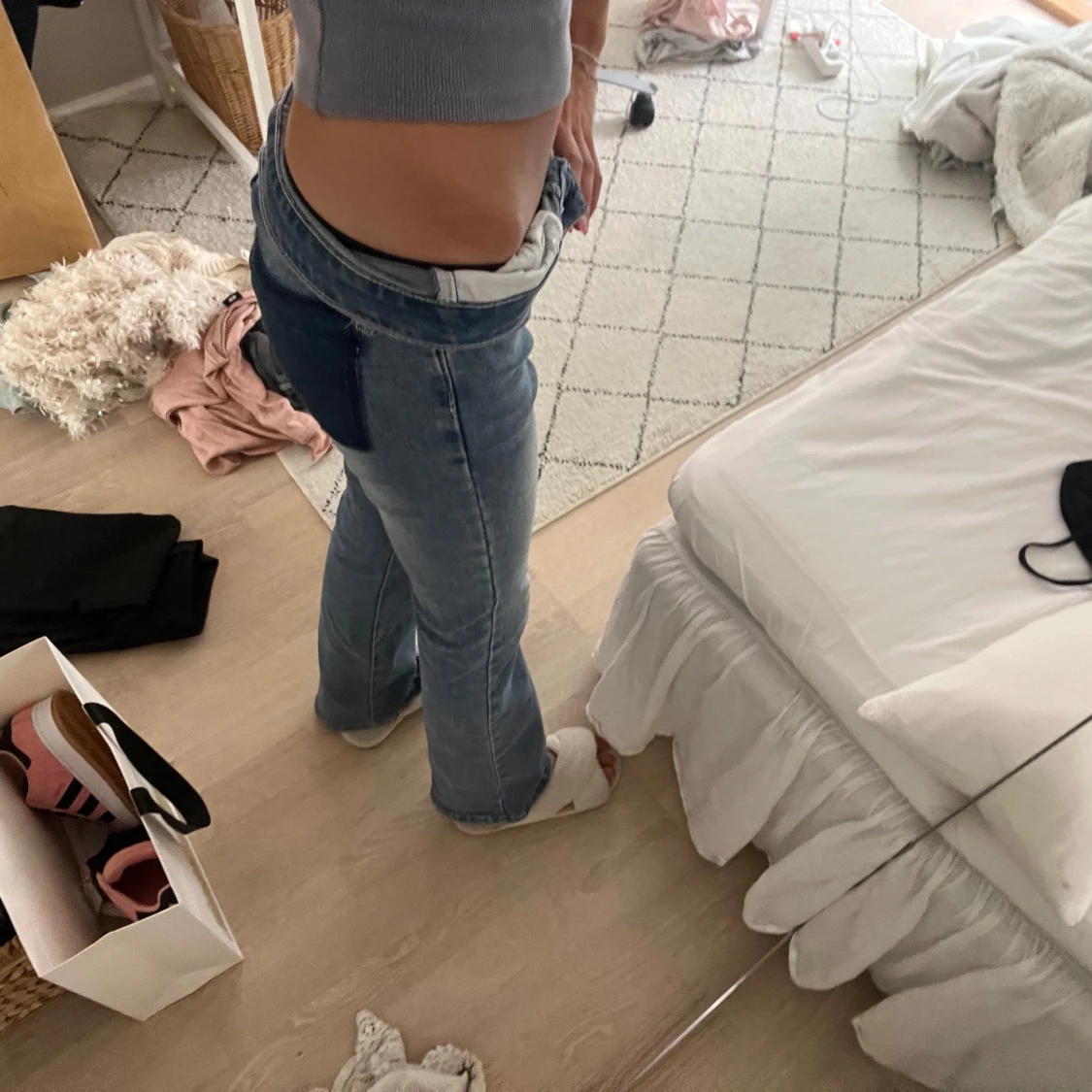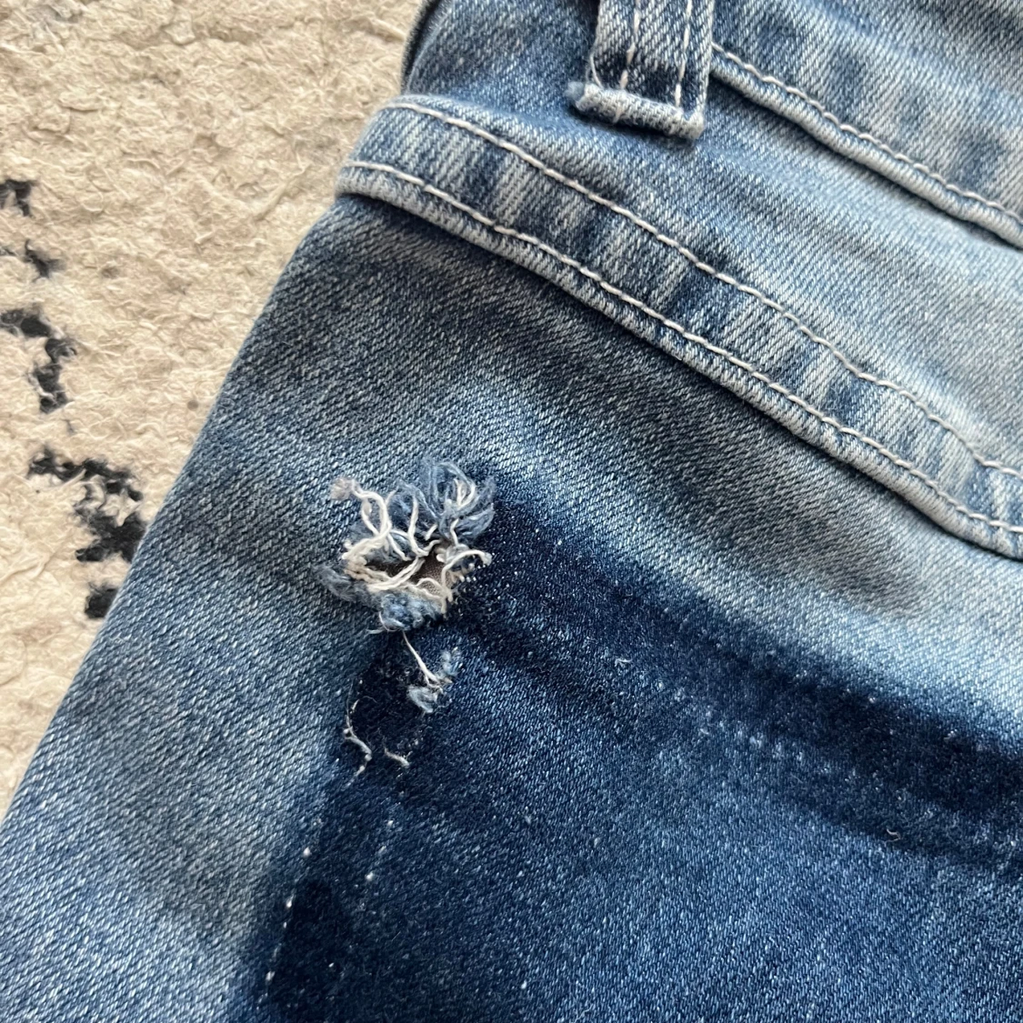 Har tagit bort fickorna på jeansen!! Litet hål vid ena fickan men inget som man lägger märke till