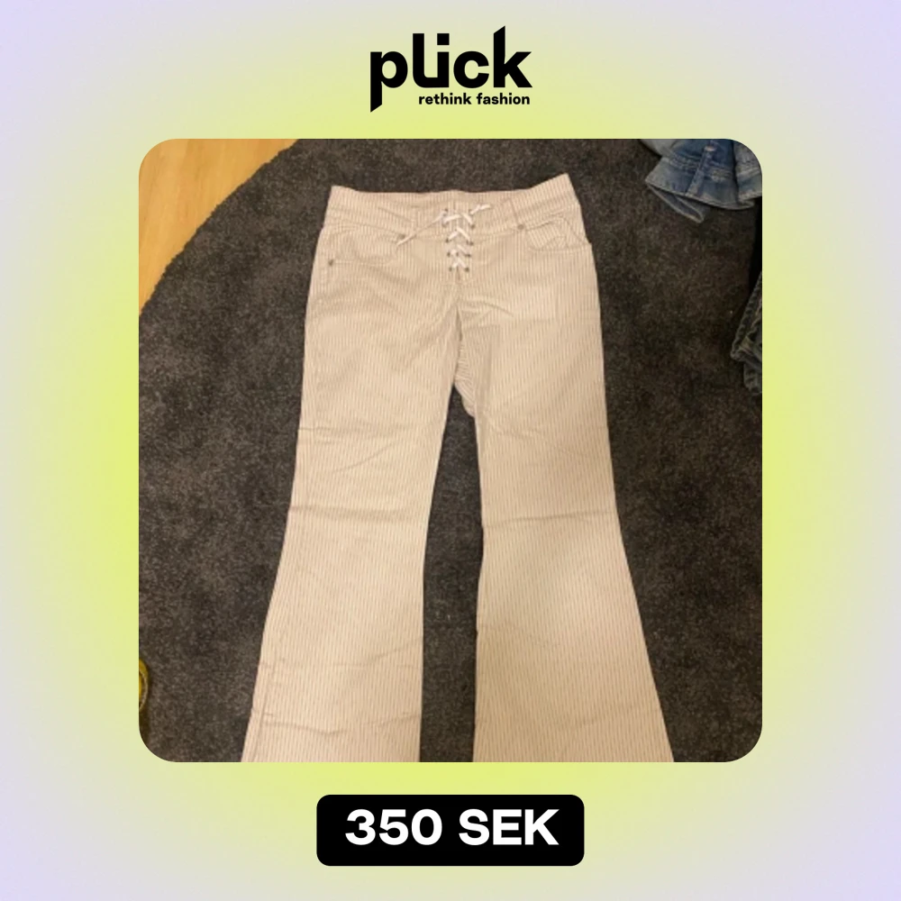 Lågmidjade byxor, har tyvärr inga bilder när jag har på mig byxorna eftersom dom är för små för mig💞 Midjemått 35x2 (stretchiga) Innerbenslängden 70cm Ytterbenslängden 91cm