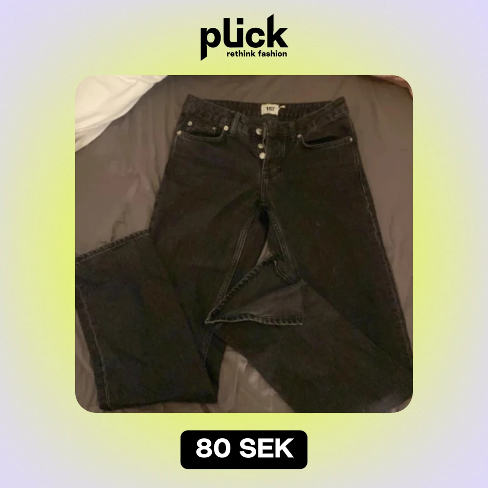 Svarta mid jeans.är inte så små i midjan och har slits längst ner.