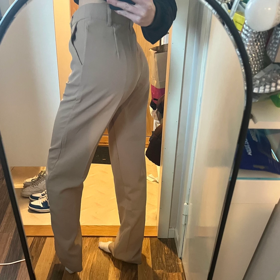 Super fina beiga kostymbyxor i storlek XS från Madlady! Jag säljer dessa då de tyvärr är lite stora för mig :( De har använts två gånger men mestadels bara legat i garderoben, alltså så gott som nya! Köpta för 500kr på Madlady, pris kan diskuteras ☺️