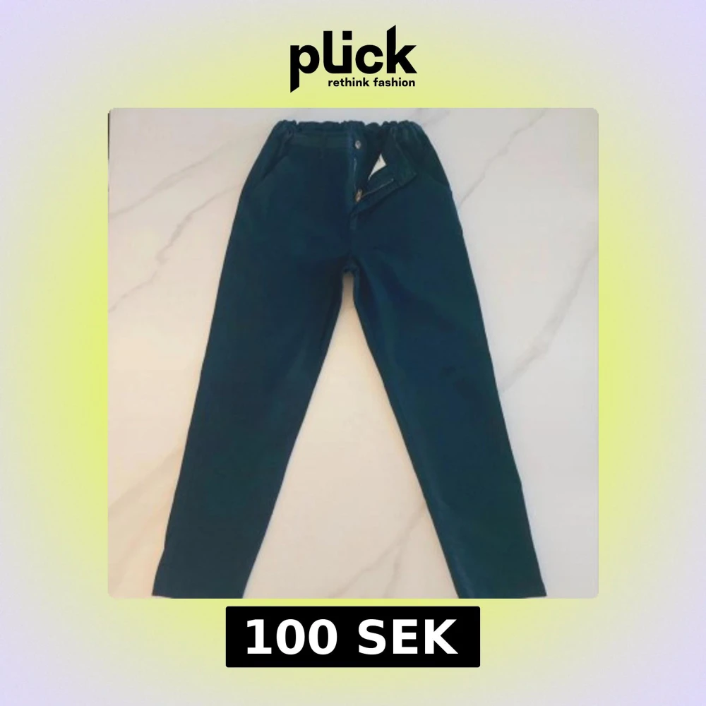 Säljer ett par mörkblå byxor med normal passform och klassisk dragkedja samt knapp i midjan. Byxorna har elastisk midja och raka ben, perfekta för en stilren look.