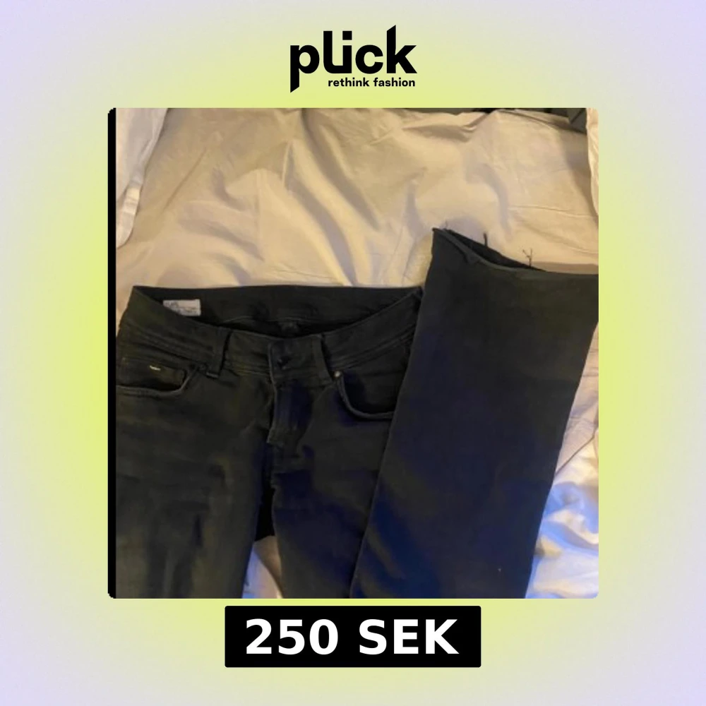 Snygga svarta jeans som är sköna. Skulle säga dom är Low rise men dom är högre där bak så att man inte ser trosorna. Har klippt dom längst ner för att dom skulle passa så skulle säga dom är bättre för någon som är kortare❤️
