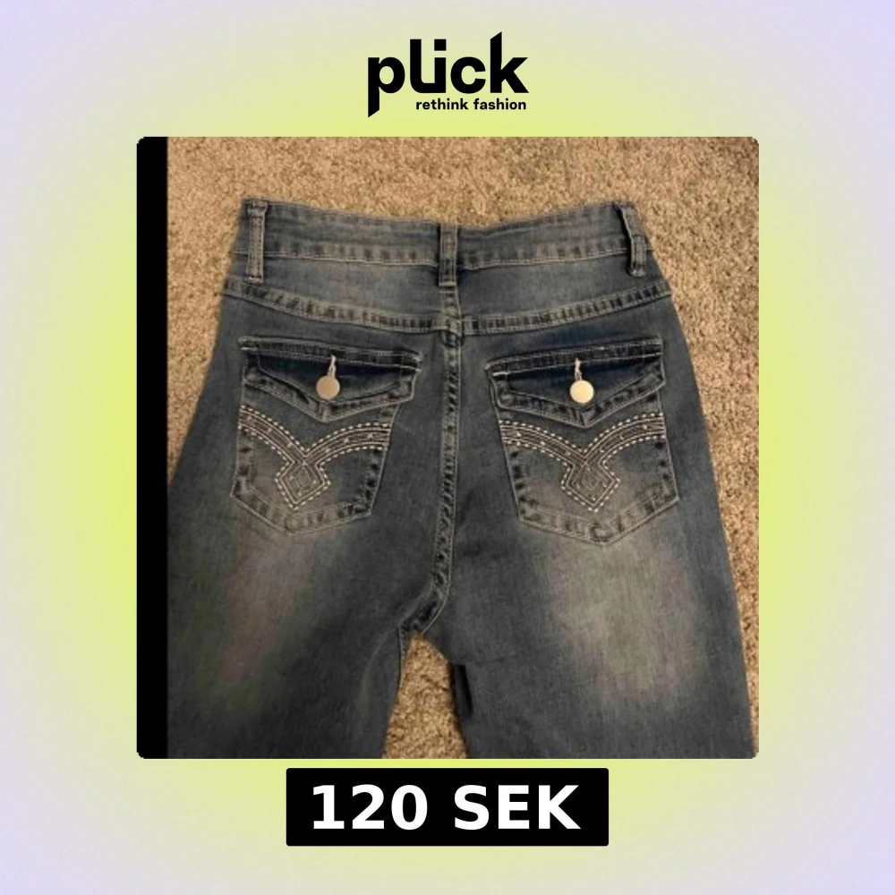 Snygga blå jeans med broderade detaljer på bakfickorna och dekorativa knappar. De har en klassisk femficksdesign och en bekväm passform.
