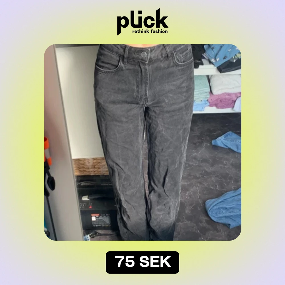 Högmidjade raka svarta jeans från KARVE. Har en liten fläck på baksida höger ben men är annars i bra skick. 📏Midjemått tvärs över: 33 cm📏 📏innerbenslängd: 77 cm📏 💕Skriv om ni undrar nåt💕 💸Priset går att diskutera💸