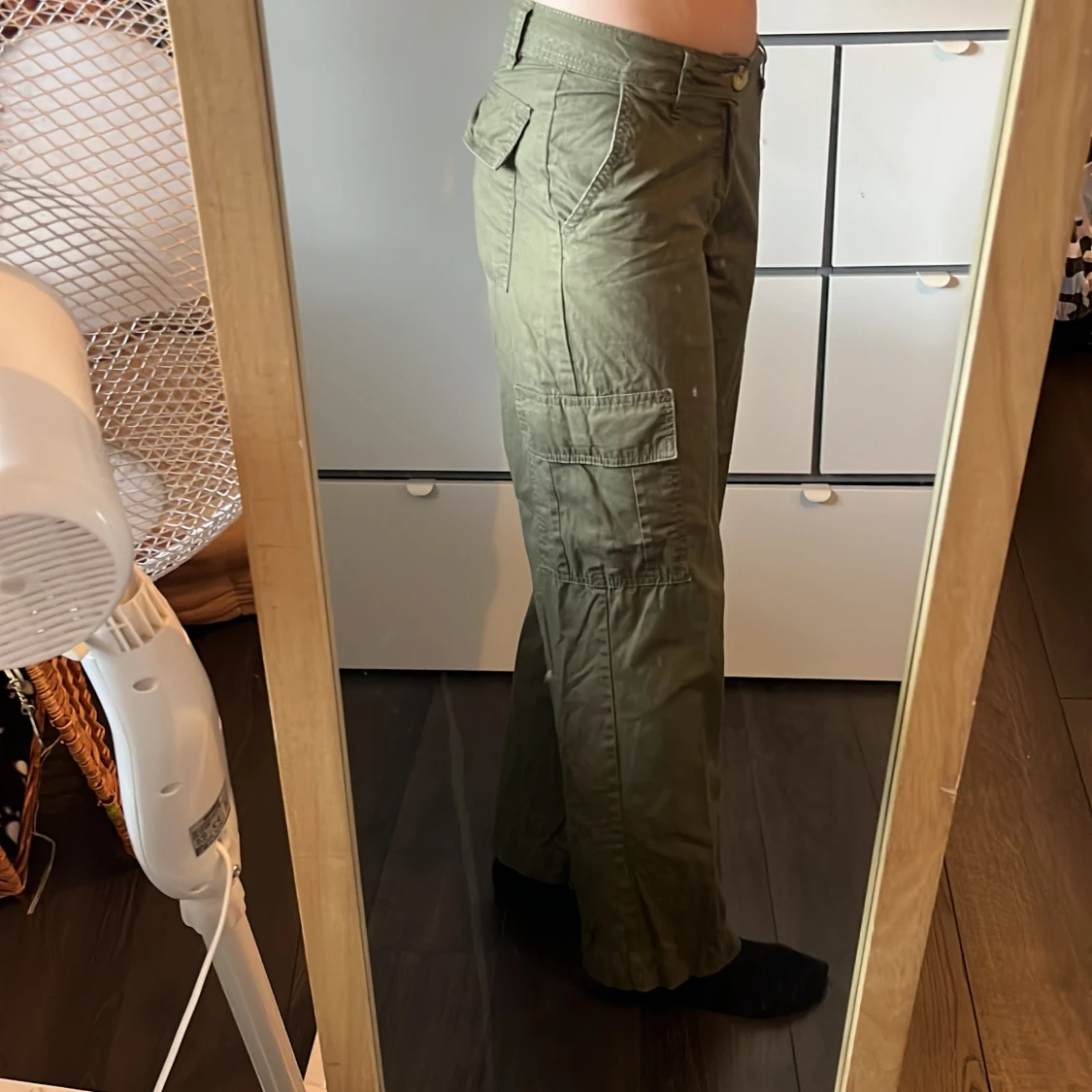 Olivgröna cargopants med raka ben