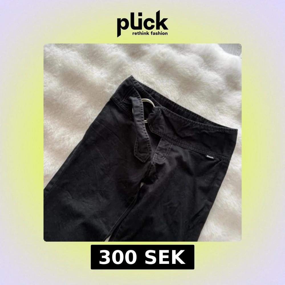 Svarta bootcut-byxor från Bench med bred linning och dekorativt bälte med metallspänne. Byxorna har en snygg utsvängd passform och Bench-logga baktill i midjan. Perfekta för dig som gillar en avslappnad men trendig stil.