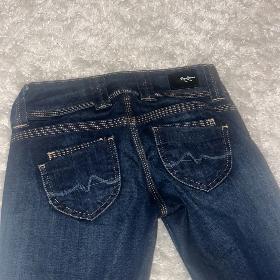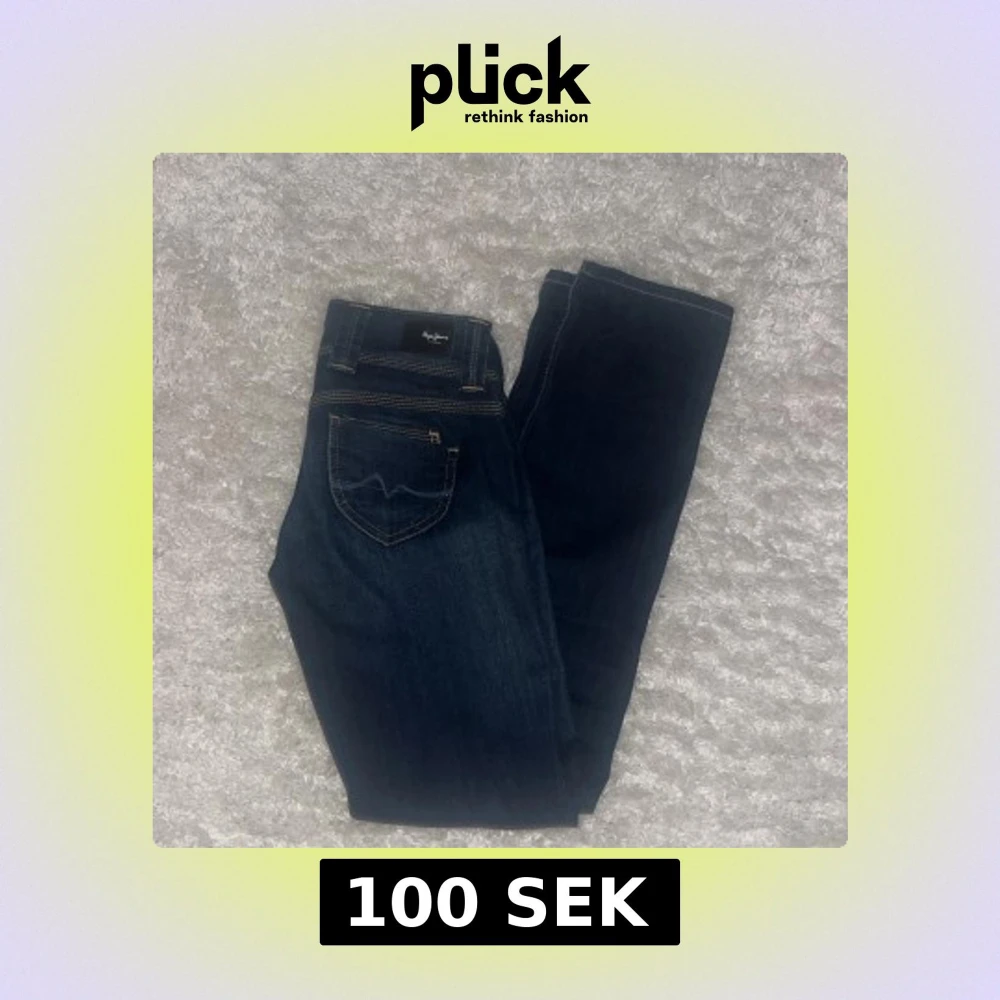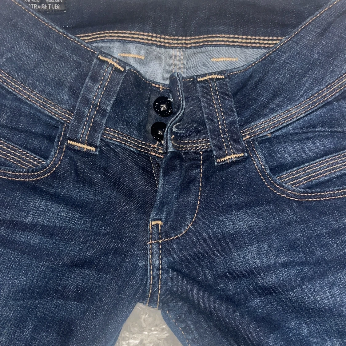 Snygga mörkblå jeans med klassisk design och knappar i midjan. Perfekta för en avslappnad stil. Kom privat för mått💗