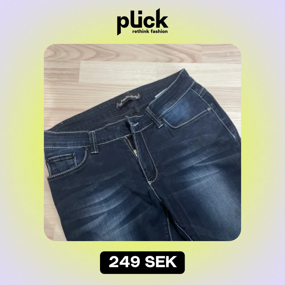Mörkblå jeans  - Säljer ett par mörk blå jeans som jag har gjort lite mer lågmidjat skriv för frågor