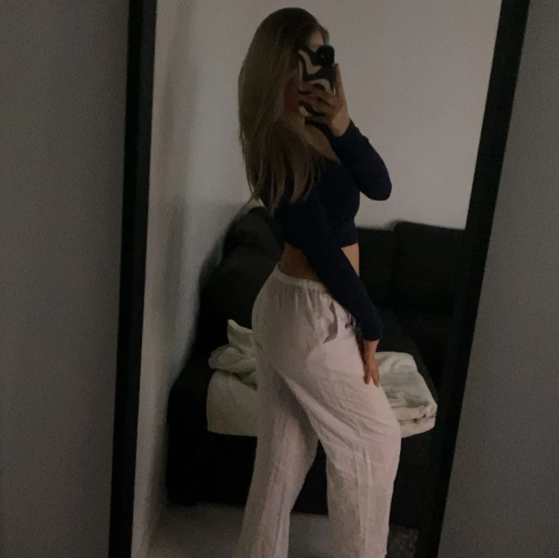 Säljer ett par vita linnebyxor med otroligt bra passform som följer kroppens formning och gör så att dessa byxor sitter otroligt bra och snyggt på 😍👏🏼 snörning i midjan. Byxorna passar alla då just dessa gör magi automatiskt , perfekta för chill dagar/finare dagar fest dagar allt! U name it . Materialet är mjukt och bekvämt, och midjan är hög till lågmidjade dessa byxor sitter så bra på och formar efter hur du vill ha dom på så du kan ha midjan hur du vill! justerbar snörning! Helt otroliga!😮💨😍🌸
