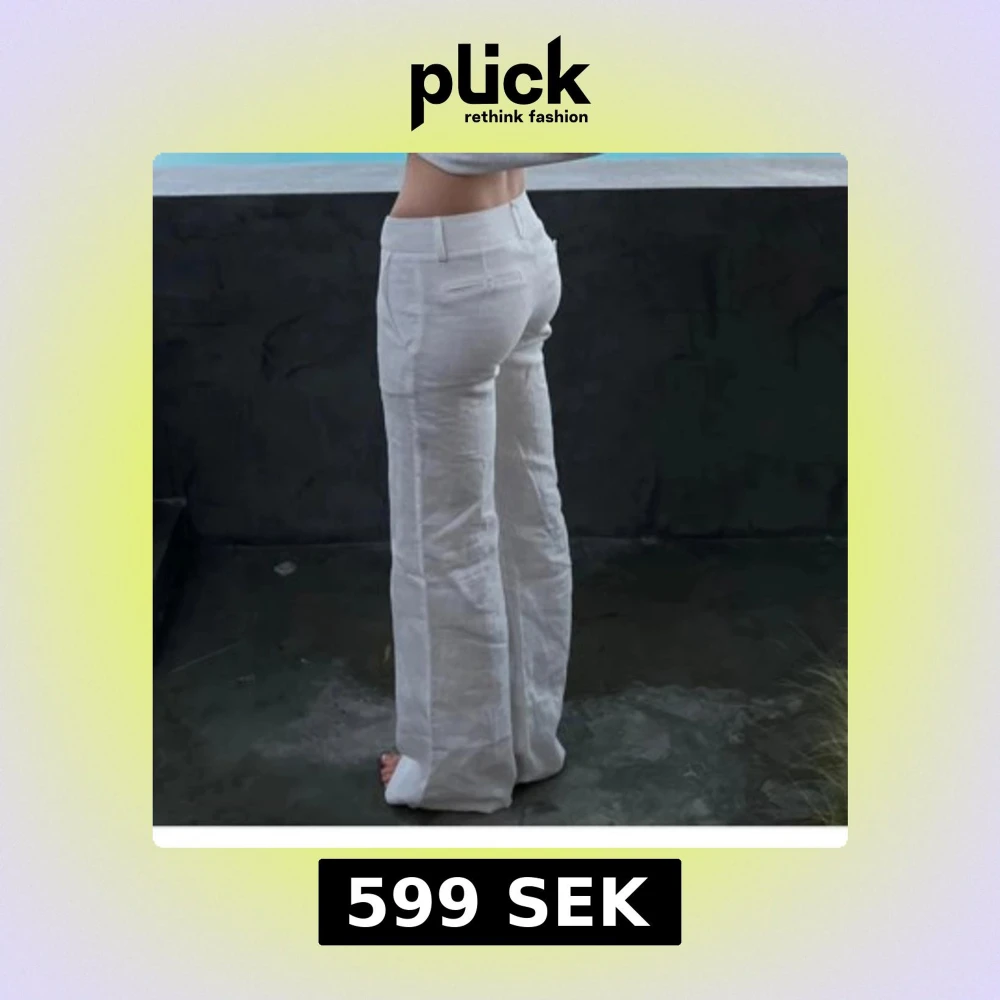 Snygga vita linnebyxor från ALOBHA i storlek XS. Byxorna har raka vida ben och klassiska fickor bak med knappar. Slutsåld på hemsidan, originalpris 899kr🌸nästan aldrig använda, lite ”smutsiga” längst ner vid sömen på byxorna, men går att tvätta bort, hör av dig vid frågor!🥰