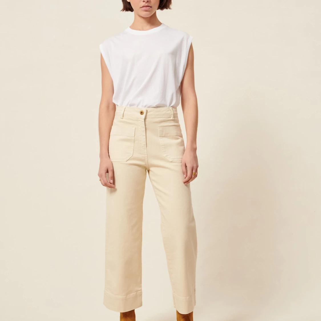 ⚠️ Mellan bilden är lånad⚠️ Jätte fina beiga byxor, Perfekt att ha på sommaren, Byxorna kostade originellt 1600kr Dom har inga fläckar på sig , säljer dom för dom är för små, Köparen betalar frakten