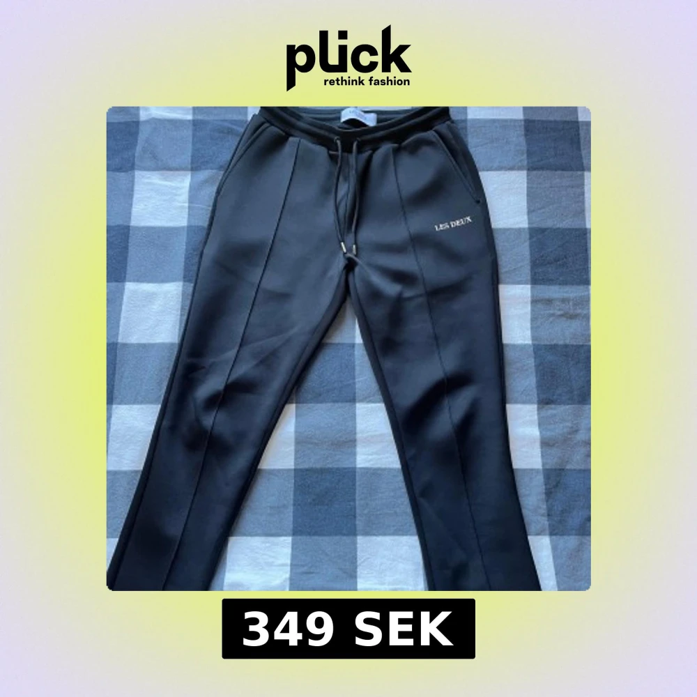 Svarta byxor från Les Deux med raka ben och snörning i midjan. Byxorna har diskret logga på ena benet och sydda pressveck framtill för en stilren look. Perfekta för en avslappnad men ändå uppklädd stil.