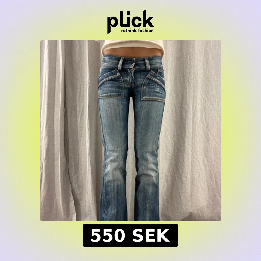 Blåa lågmidjade jeans från Diesel. stl 24/32 som motsvarar xxs/xs. (ca!) > midjemått: 30cm rakt över, innerbenslängd: 79cm. Jag är 167 för referens.