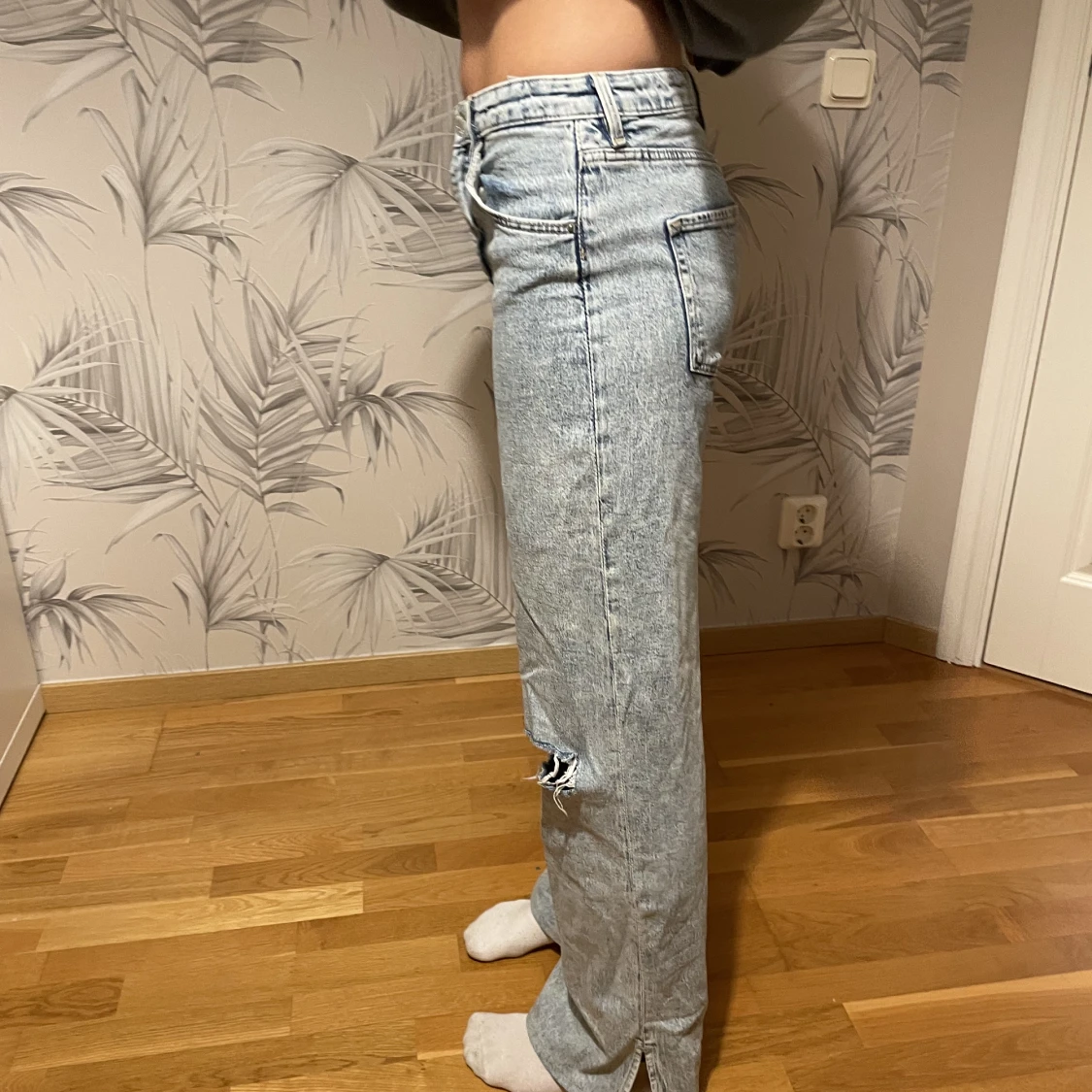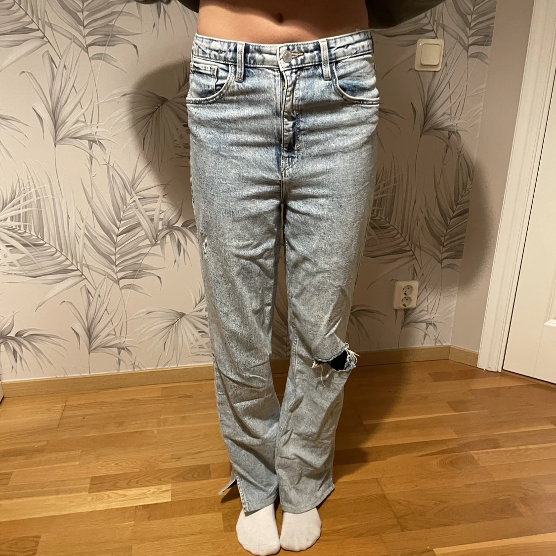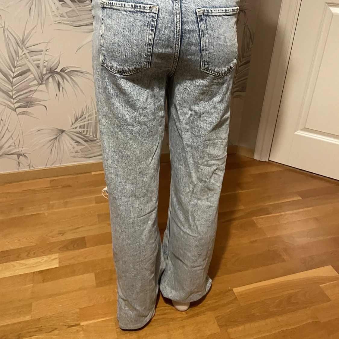 Blåa raka jeans i storlek 164 men passar även som xs. Mycket bra skick lite skrynkliga av att legat i en låda men annars inga märken.
