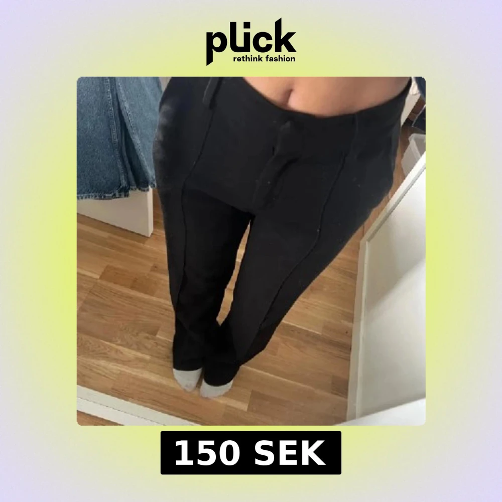 Svarta byxor med markerad söm framtill och snörning i midjan. Modellen är rak och byxorna har en enkel, stilren look som passar till många olika outfits. Materialet känns mjukt och bekvämt mot huden.