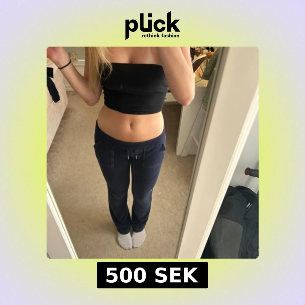 Säljer dessa jätte fina mörkblåa mjukisbyxorns från juicy couture! Man ser lite på färgen att dom är ganska använda och lite urtvättade men inget man tänker på. Säljer dom pågrund av att dom är för små och för korta, dom är i storlek Xss