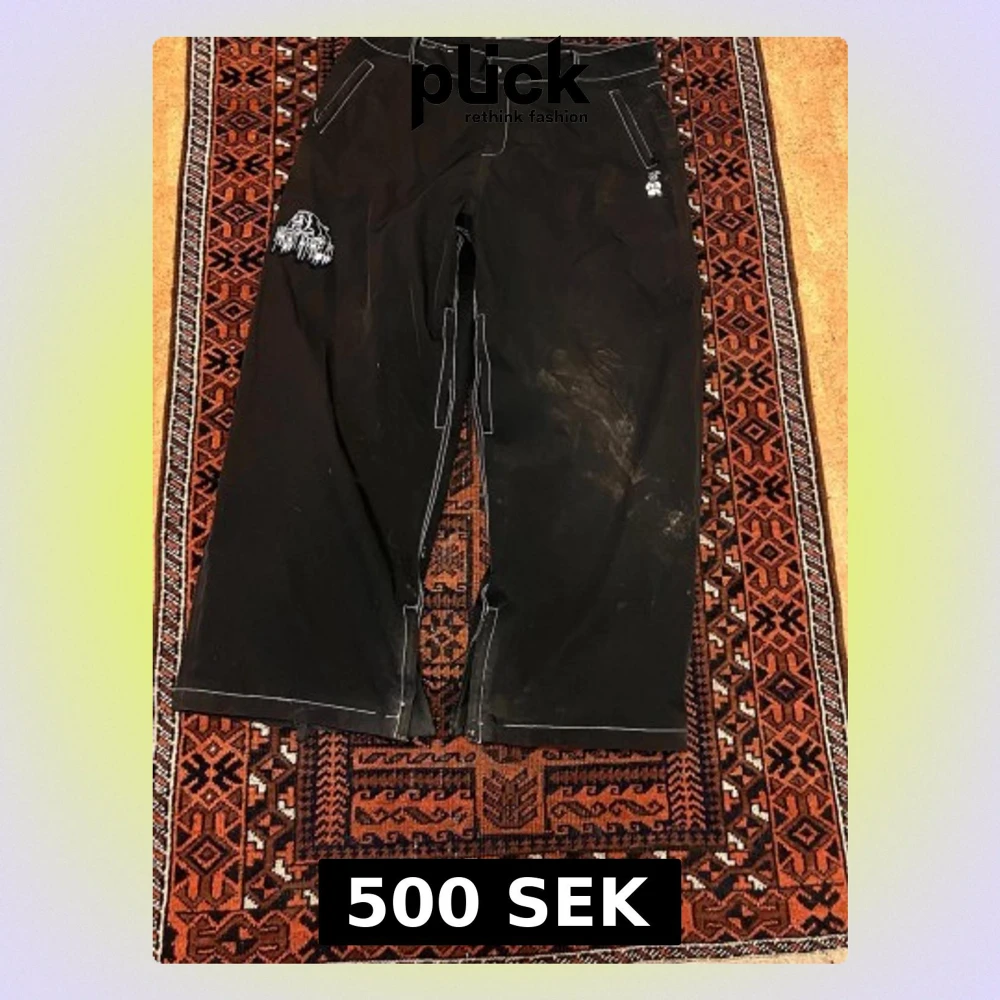 Svarta täckbyxor med vita kontrastsömmar och dragkedjor vid bensluten. Byxorna har fickor fram och bak samt bälteshällor. Detaljer som broderad logga och patch på ena benet. Perfekta för vinterns äventyr.