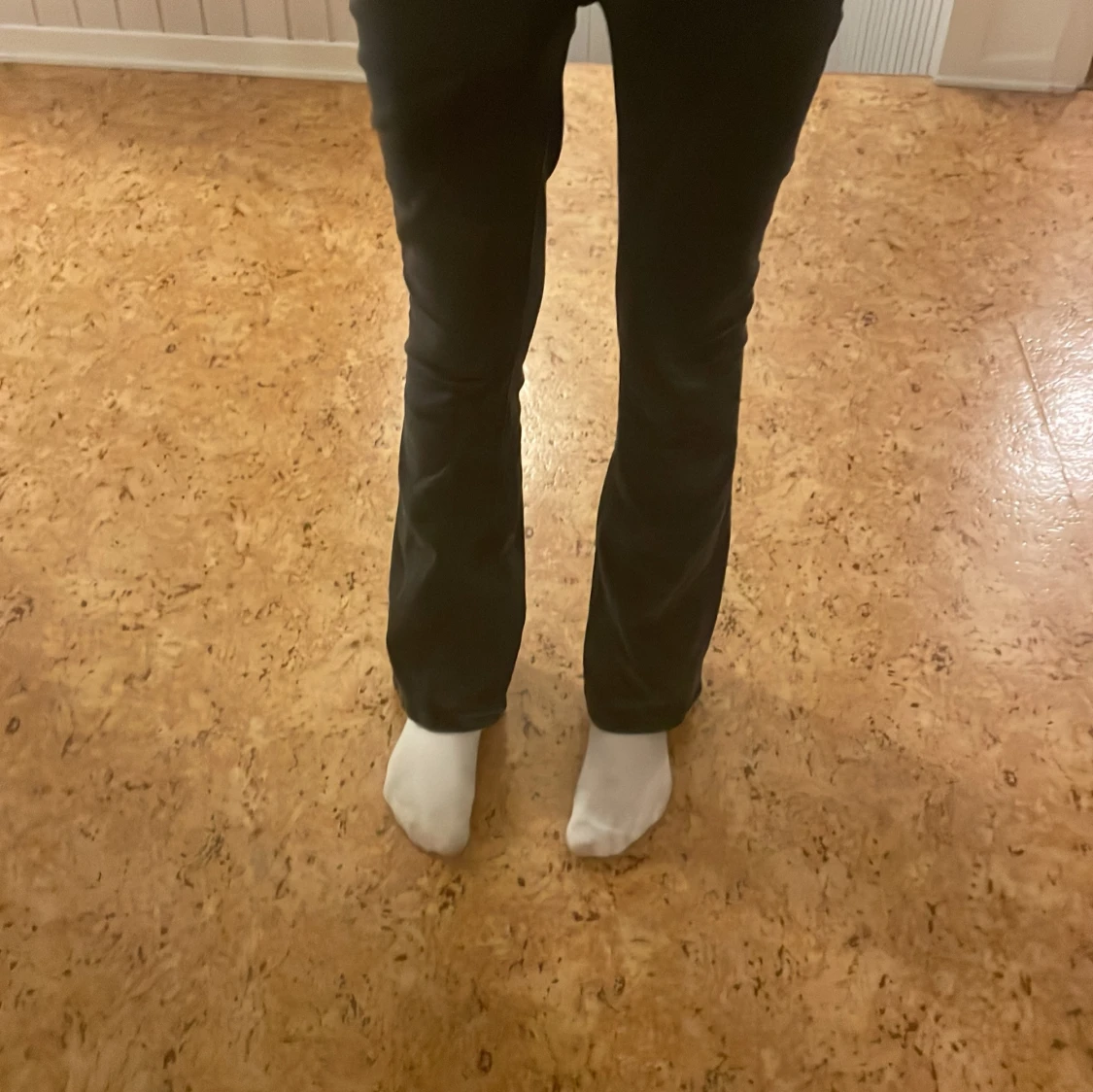 Snygga svarta bootcut jeans från 157 med låg midja. Perfekta för en stilren look. De har en klassisk design med dragkedja och knappar framtill.