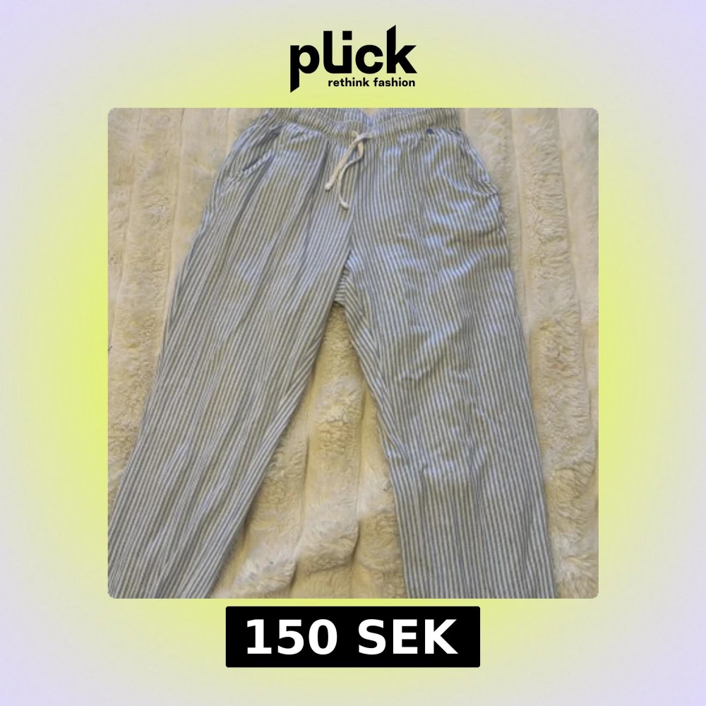 Säljer ett par ljusblå och vita randiga pyjamasbyxor från s.Oliver. Byxorna har dragsko i midjan, raka ben och sidfickor. Perfekta för chill dagar eller när du vill ha en avslappnad look.