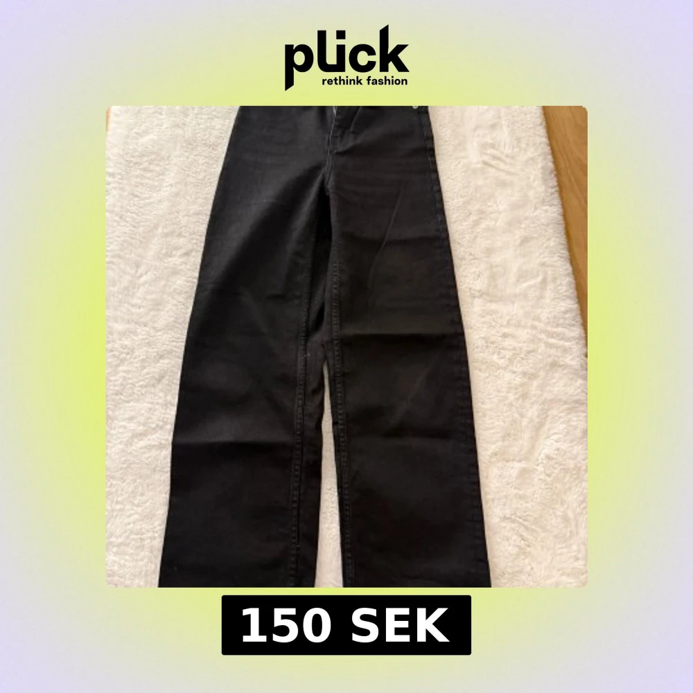 Snygga svarta jeans med hög midja och raka, vida ben. Klassisk femficksmodell med dragkedja och knapp framtill. Perfekta för dig som gillar en avslappnad och trendig look. Passar till allt och är superenkla att styla.