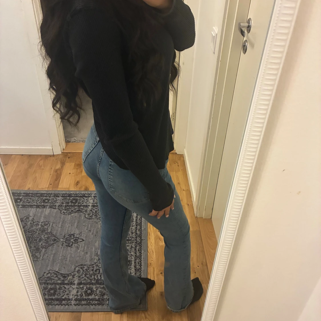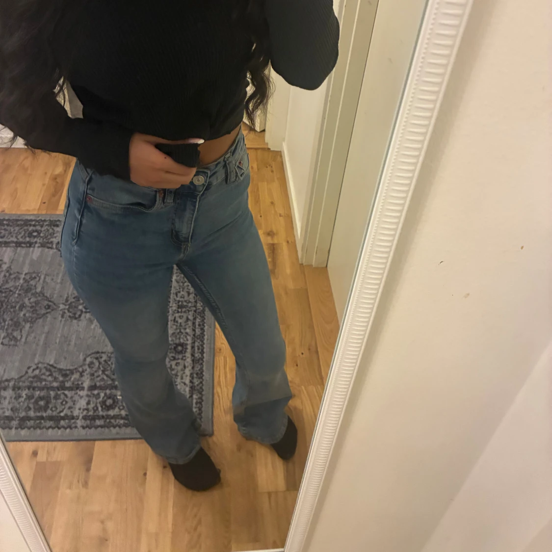 Blå bootcut jeans med hög midja