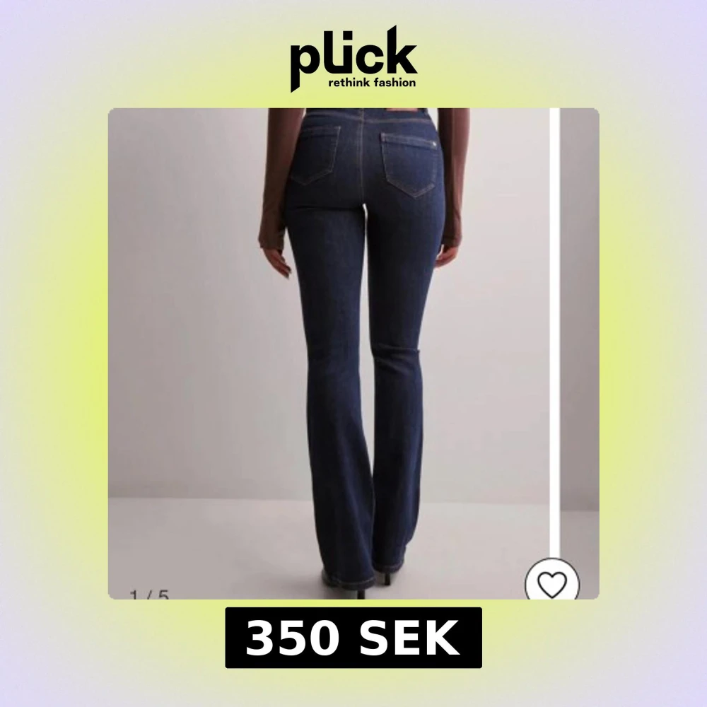 Snygga mörkblå jeans från ONLY med bootcut passform och hög midja. Klassisk femficksdesign, tydliga kontrastsömmar och läderpatch med logga bak. Jeansen är tillverkade i stretchigt denim som sitter bekvämt och framhäver siluetten. Oanvänd!!!